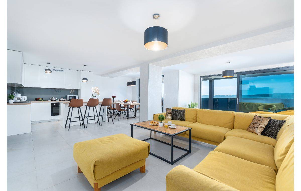 Das Apartment Superior befindet sich im 2. Stock und hat 4 Schlafzimmer für je 2 Personen, 4 Bäder, eine voll ausgestattete Küche, Wohnzimmer, Essbereich und einen Balkon mit herrlichem Blick auf das Meer. Die Unterkunft verfügt über einen privaten Pool, kostenlosen Parkplatz für 2 Autos, kostenloses Wi-Fi, Handtücher und Bettwäsche.